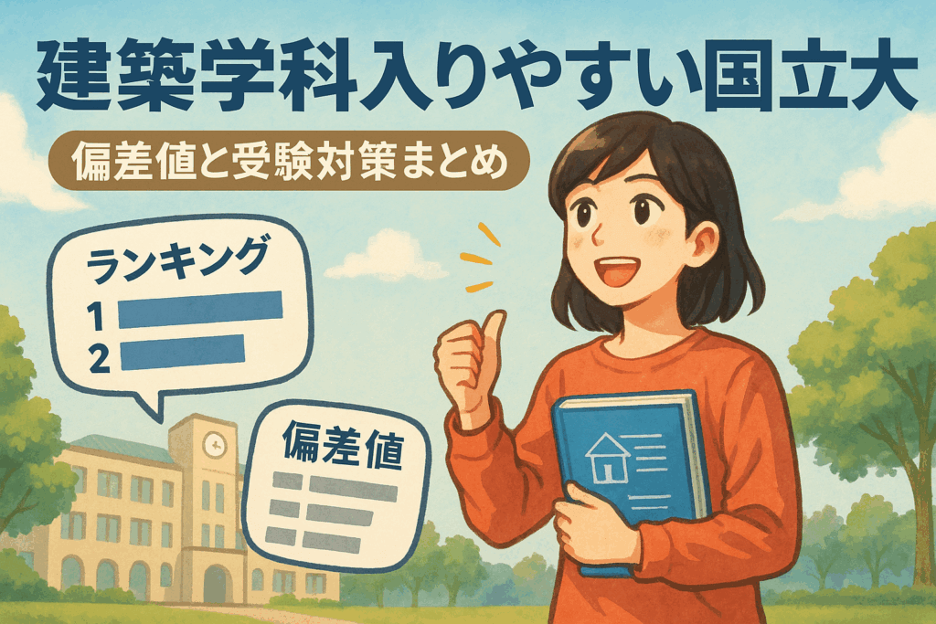 国立大学の建築学科は地域によっては偏差値が比較的低く倍率も落ち着いているため、入りやすい大学も存在します。また、入試方式や共通テスト得点率などは大学ごとに異なるため、志望校ごとの最新情報を必ずチェックしましょう。首都圏を中心とした有名大学は倍率が高めですが、地方国立大学は比較的狙いやすい傾向があります。